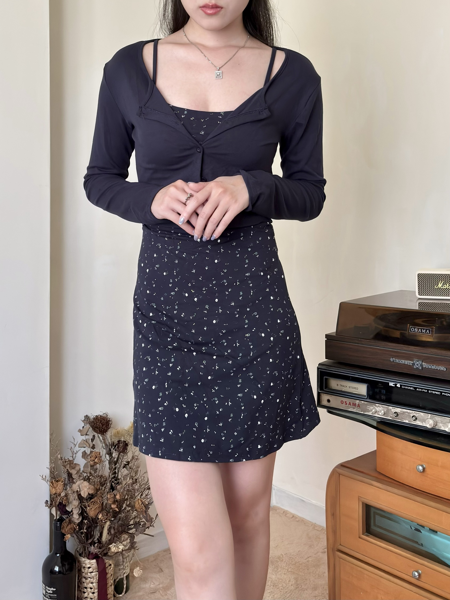 Floral Cardigan Set 藍色小碎花開衫兩件套